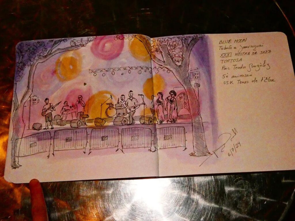 Aquella mateixa nit, el parc també va rebre la visita del col·lectiu dels Urban Sketchers Terres de l’Ebre, els pintors aquarel·listes de carrer, que celebraven el seu cinquè aniversari. Els pintors van plasmar als seus quaderns les millors imatges que va deixar-nos el concert de tribut a la banda de Jamiroquai, Fool Moon.